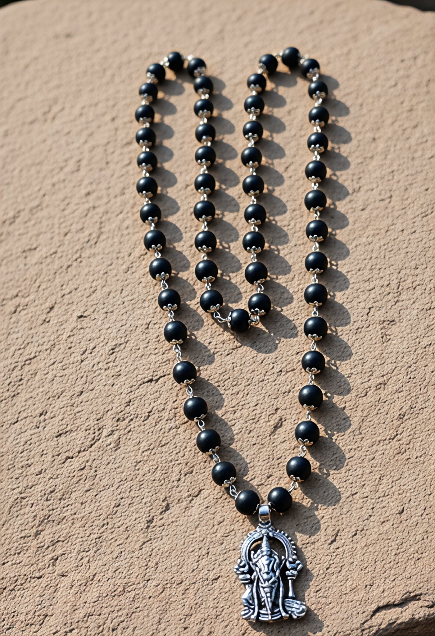 MaterialNatural Karungali (black ebony) beads + Murugan metal locket (silver/golden finish options)